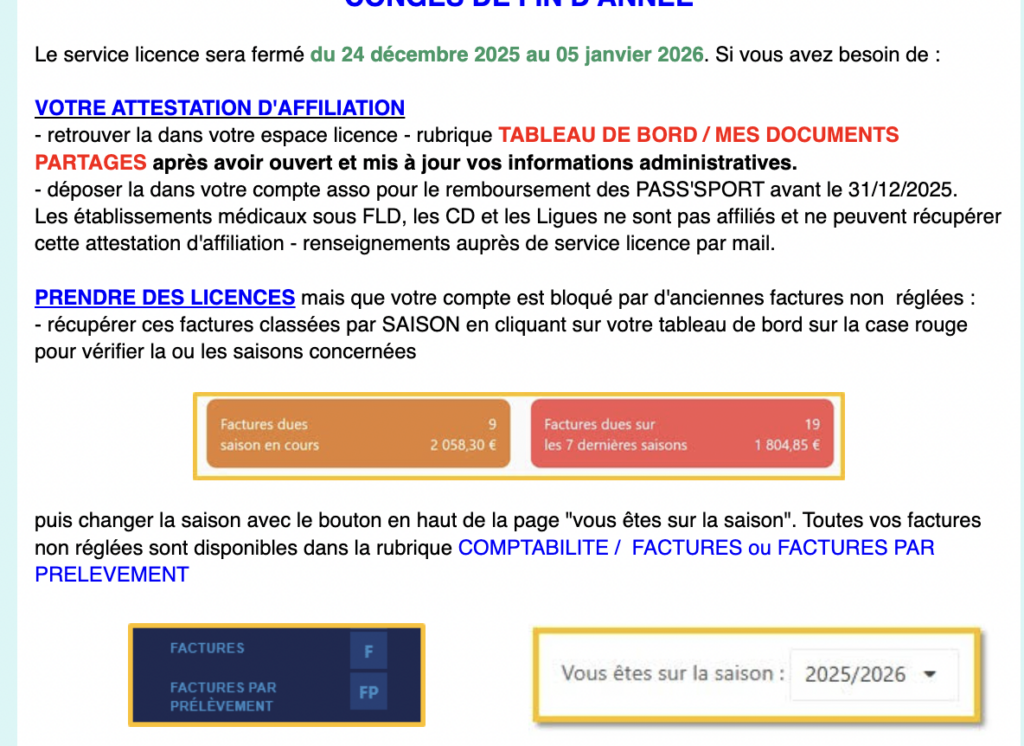 Le service licence sera fermé du 24 décembre 2025 au 05 janvier 2026.