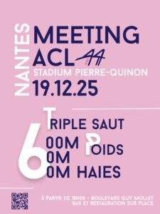 Meeting Indoor ACL44 – Le sport adapté à l’honneur ! Comme chaque année, les athlètes du sport adapté seront mis en lumière lors du triple tour de piste (600m) du Meeting Indoor ACL44 ! Vendredi 19 décembre Course prévue à 21h00 (l’horaire pourrait être légèrement avancé selon le nombre d’inscrits — on vous tiendra informés).…