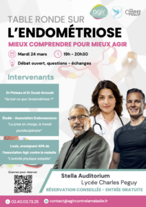 📅 Mardi 24 mars🕖 19h – 20h30📍 Stella Auditorium – Lycée Charles Péguy L’endométriose concerne 1 femme sur 10 et reste pourtant encore trop méconnue.Venez échanger avec des professionnels et des acteurs engagés pour mieux comprendre la maladie, sa prise en charge et l’importance d’un accompagnement pluridisciplinaire. 👩⚕️ Dr Ploteau & Dr Duval-Arnould – Qu’est-ce que…