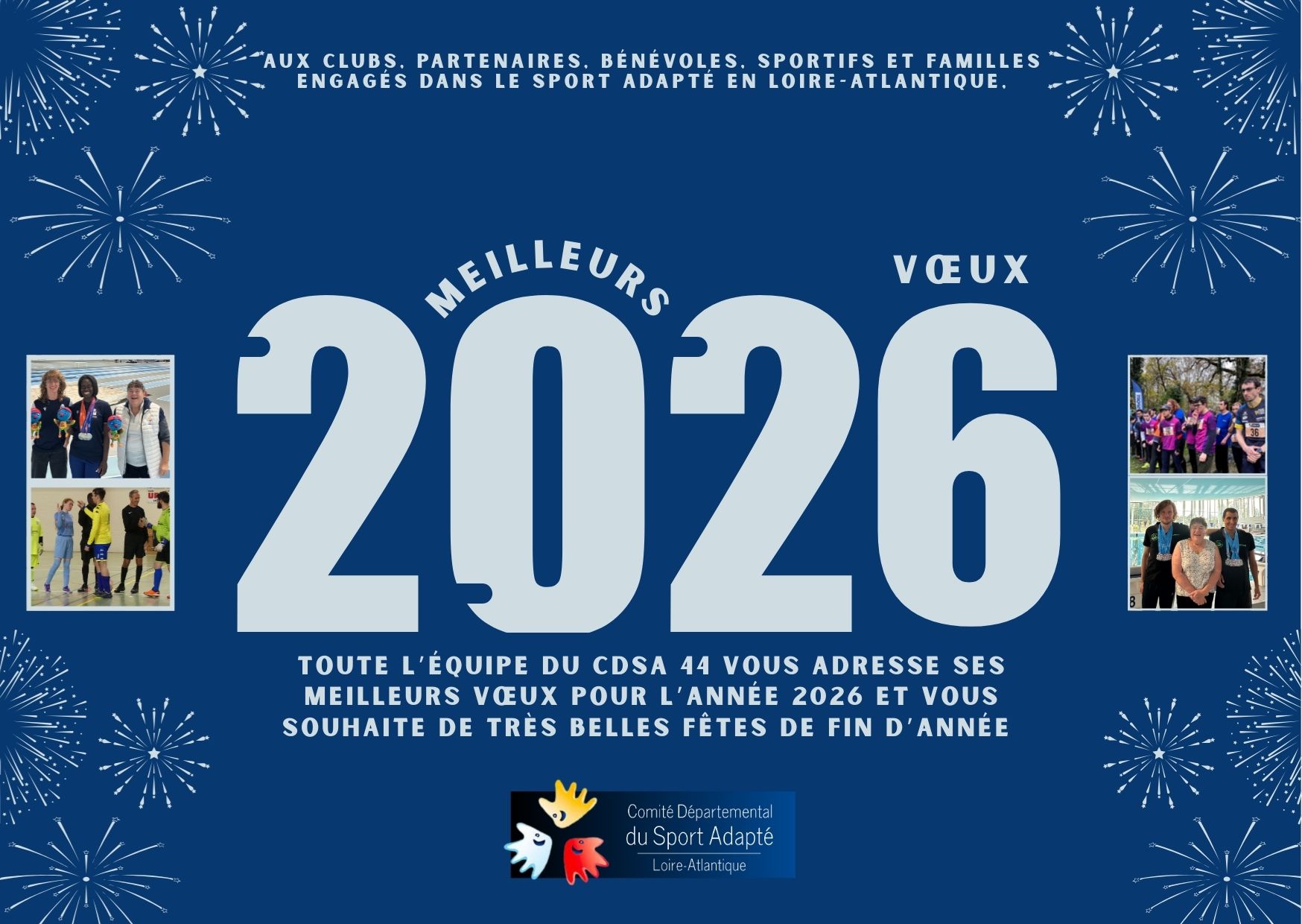 Chères Présidentes, chers Présidents,Chères dirigeantes, chers dirigeants,Chers bénévoles, éducateurs et partenaires des clubs Sport Adapté de Loire-Atlantique, À l’aube de cette nouvelle année, je souhaite, au nom du Comité Départemental du Sport Adapté de Loire-Atlantique et en mon nom personnel, vous adresser mes vœux les plus sincères. L’année écoulée a une nouvelle fois démontré la…